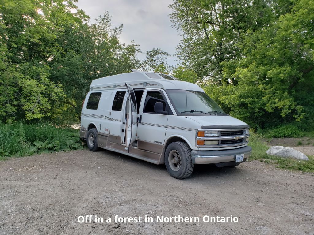 Summer is easier in some ways. Parking on pavement is something I try to avoid in the summer months. Heat radiates. No air if I am not plugged in. I am a hot woman to begin with. I will look for grass or gravel areas to park. Position is not really an issue in the summer. In the winter and colder months it’s good to find a place to block the wind. Whether in a parkette surrounded by trees or a parking lot you can park beside a cart shelter or a wall it all helps to keep the van and me warm. Fall and Spring its watch for mud. She is a heavy beast and will sink! Hahaha! So when looking for places to park, down backroads, riverbanks, lake shores you need to be wary of the softness of the ground. My rule is if in doubt get out and walk it. If it’s a maybe make it a no! Lol! Winter is a challenge not only because if those cold north winds but also snow. I have been snowed in a couple of times. I carry a shovel for just those moments! Haha!