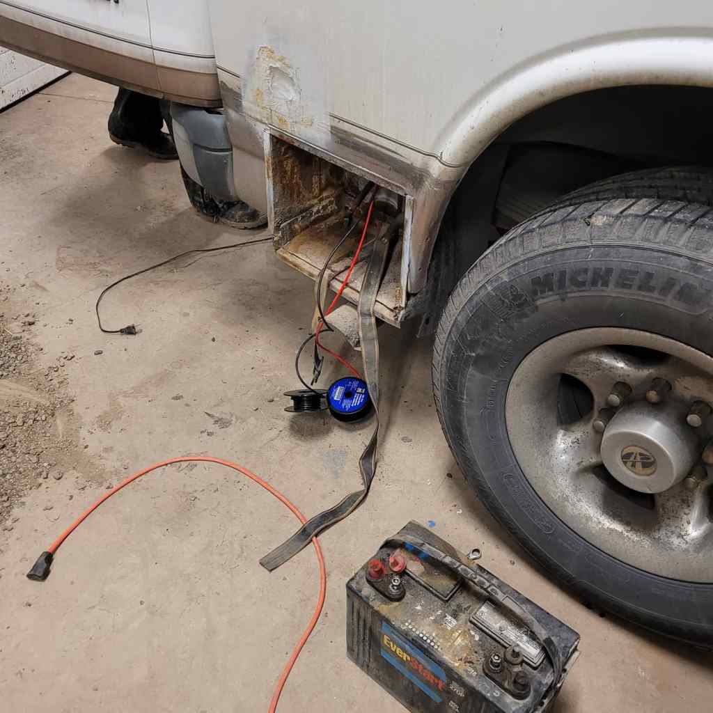 My thought was that we would replace the one and put the other under the bed. Where the house battery is located there is no where for another battery to sit. Under the van there is very limited space with the water tank, the propane tank and the gas tank all taking up space. Really the only place to put them is above the existing battery box under the bed.