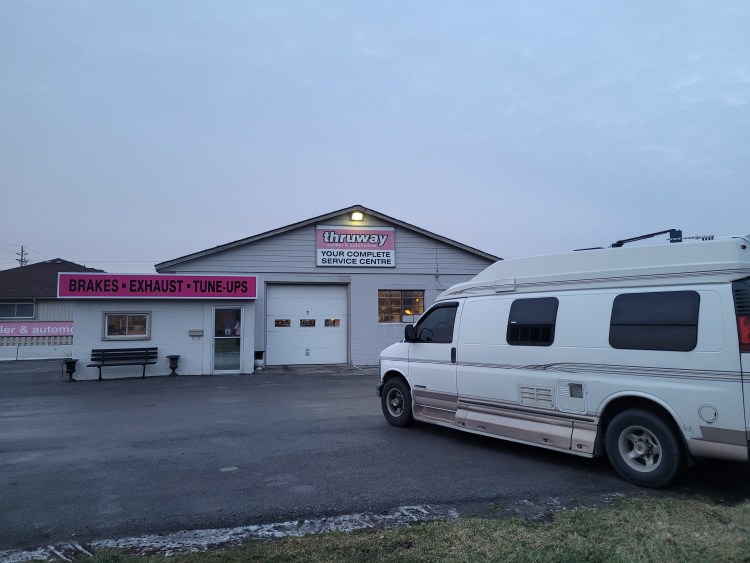 The night before I went and parked a little closer. She would no longer go up to highway speed and an 8 am appointment meant an early morning. Best thing about having a movable home is you can move closer so it is not as early morning as it needs to be!