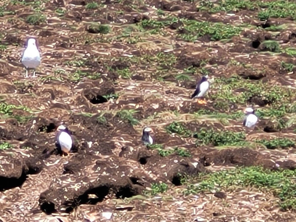 Puffins are small birds that nest on cliffs and build small burrows in the rock. They are colorful little birds who feed off the fish and eels in the ocean. There are many species of Puffins and what we saw were the North Atlantic Puffins. They were cute and colorful!