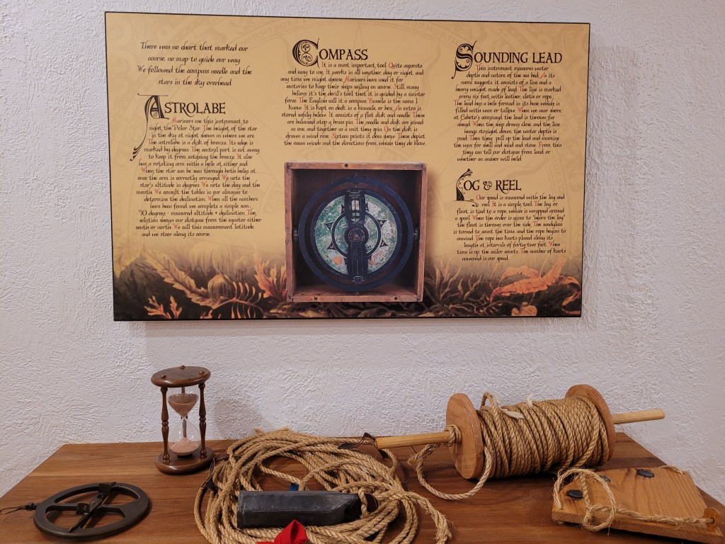 That evening they headed west. As they left the English Channel and headed out to sea, he fell asleep to the hope for a safe a travel. There was no maps to guide them only a compass and the stars to show them the way. They used different instruments to guide them, Astrolabe, a sounding lead and a log and reel.