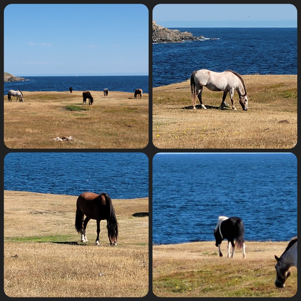 Starting to leave town to make our journey west we came across Dungeon Provincial Park, just down the road from the lighthouse. We did not make it very far. Lol! We pulled in and was greeted by horses. I thought they had to be wild horses as this was a Provincial Park but it turns out that the horses belong to people in the community and this is also a community pasture. Just beautiful animals.