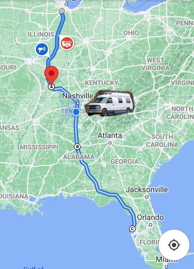 As I drove south the wind began to pick up. It was a nice day but as I got to the open fields I was fighting to keep my wheels straight. Night time also comes early at this time of year and you know my rule about being parked before dark. No hitting of animals!!! In Illinois, at least in the southern end you can spend the night at the rest stops. I pulled in and made myself a coffee and settled in. It was a rocking but quiet night. I do not have my van completely set up for those north winds so it was a might chilly that night. The furnace would come on often but I was not worried. I had lots of battery and lots of propane. Snuggled in for that night I did not know the trouble I was going to cause myself. The battery would last, the propane? Well you will see.
