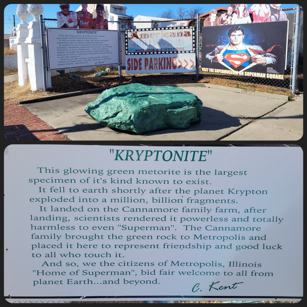 Heading towards the kryptonite rock was the farthest hike so I thought I would do that first. It did not feel powerful to me but it was pretty big. Back towards the statue the intersections have curbed walking paths. I was looking at the scenery and fell off the side of the curb and went down hard. Oh Ouch. Where was Superman??? He did not catch me before I hit the ground!! Darn. I guess sometimes you just need to be your own Superhero. Scraping my knee and bruising a few other things I got myself back to the van. That was the end of walking for me that day. Time to head south.