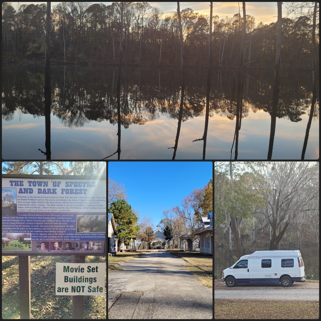 Down through Alabama, a stop for the night at Jackson Lake Island. A beautiful little island with an interesting history. For $15.00 a night you can park anywhere on the island where you can wander through the abandoned movie set of Tim Burton’s Big Fish and the fictional town of Spectre.