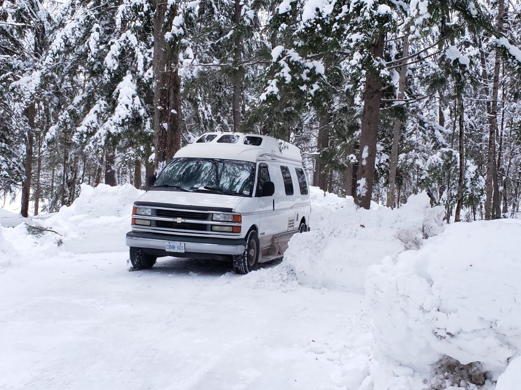 Learning the different aspects of driving her has been an adventure and misadventure. Learning how heavy she is by getting her stuck a few times, Learning the hard way and keeping in mind how tall she is, so far so good on that one took a little getting used to. The lower clearance of the basement and that extra foot with the spare tire I cannot see in my mirrors was also a oops and oh my lesson a few times. We have been to some tight places like the trail I took in Northern Ontario that the conservation officer said was a beautiful spot in the river. Turned out a trail not a road and was washed out over 2 miles up the trail. Backing out has become an art! Lol! There was a few places that I have taken her that no roadtrek has gone before like the “access road” which turned into the ATV trail at Queen Elizabeth Wildlife Park. Haha! Oh boy that was a lesson learned and a night spent on a rock. She did great though although a little damage to the under carriage because really climbing rocks is not her thing.