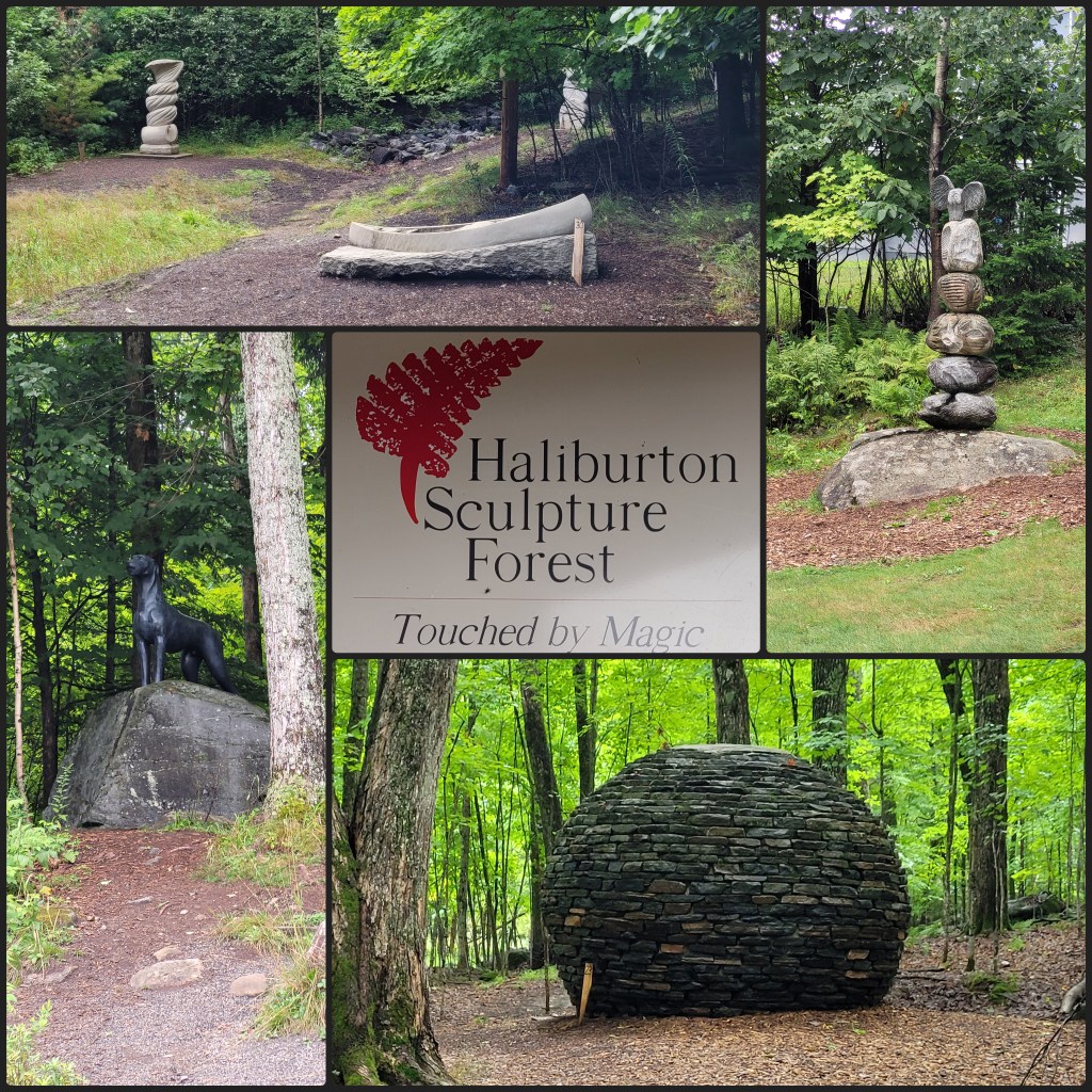 There were so many interesting sculptures along the trail. The sign as you walked in read Haliburton Sculpture Forest…Touched by Magic. It truly is! How and why is it here. You will have read my book! 😉