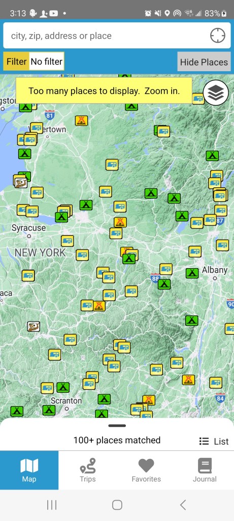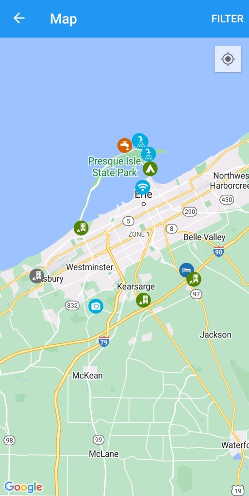 Ioverlander is an easy-to-use free app that gives a wide range of options for free parking. Created by Sam Christiansen of Song of the Road and Jessica Mans of Life Remotely, this non-profit app gives you parking locations, places of interest, dumping stations, and propane availability. It is updated regularly by the people who use it on different parking locations. I find it extremely helpful in finding a safe place to grab a night’s sleep where ever I am or using the map, where I am going.