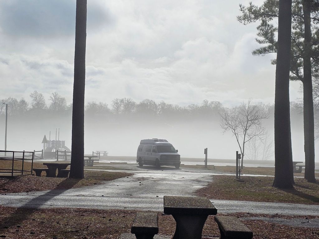 Working my way south, I had heard that the causeway had flooded with all the rain at Jackson Lake Island. It had been a kind of hard drive through Illinois, Kentucky, and Tennesse with the weather. A mix of snow, sleet, and rain made for a slow tense drive. As I scanned for a place to park for the night, I came across McFarland Park campground.