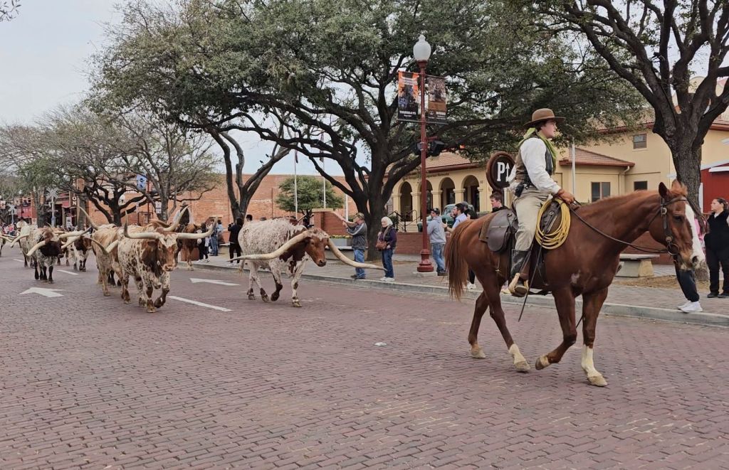 As soon as you drive the cobblestone streets to the parking lot, you know you have entered cowboy country. Cowboys riding horses and their long horned cattle they are so famous for. If you arrive at just the right time, you can see a cattle drive along the main st in front of the Fort Worth Live Stock Exchange.