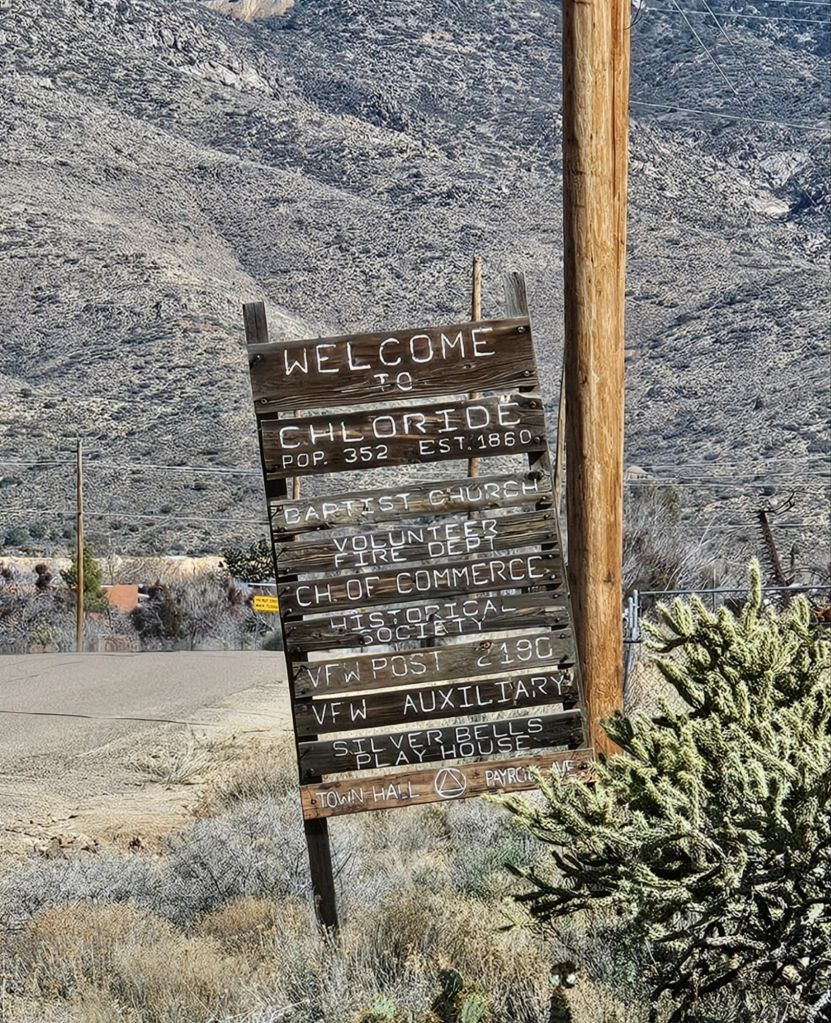 Chloride started as a mining town in the 1860s. Getting its name from the silver chloride that was found and mined here in great amounts. Not only was silver found here in generous amounts, they also found zinc, lead, copper, and turquoise.